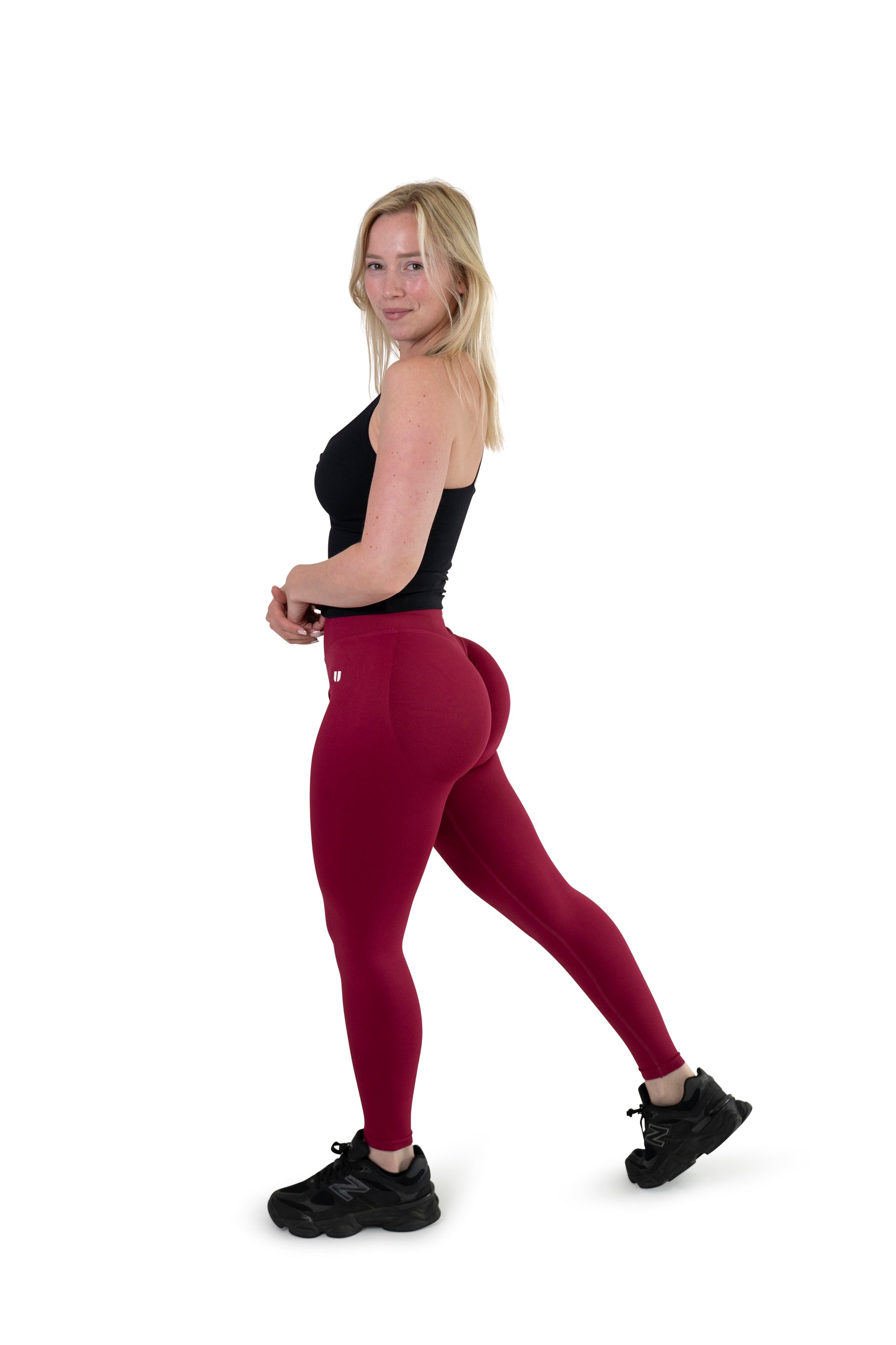 Prepare yourself for the leggings of your dreams - the Sculpt Scrunch leggings! These leggings are designed to boost your confidence and are also cameltoe proof. The fabric on the waist and legs provides compression, while the glutes have a less compressed fit for a perfect "POP." The woven fabric around the glutes is slightly thicker than our BABE leggings, providing extra lift and coverage for the hips and hamstrings. With a more sturdy booty scrunch to showcase your cheeks, these high-waisted leggings are also squat proof. The glute area has slightly less fabric than the BABE leggings, which may be preferred by those who have experienced excessive fabric with the BABE leggings.