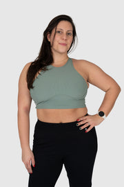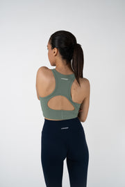 Ce soutien-gorge Core élégant présente un dos nageur, de jolis détails sur le devant et des coutures juste en dessous de la poitrine pour une coupe flatteuse. Il offre un maintien moyen et possède un col haut pour une couverture supplémentaire. Pour maintenir sa longévité, lavez-le simplement à l'envers avec des couleurs similaires à froid et retirez le rembourrage avant de le sécher. Suspendez-le pour le faire sécher et continuez à vous entraîner!