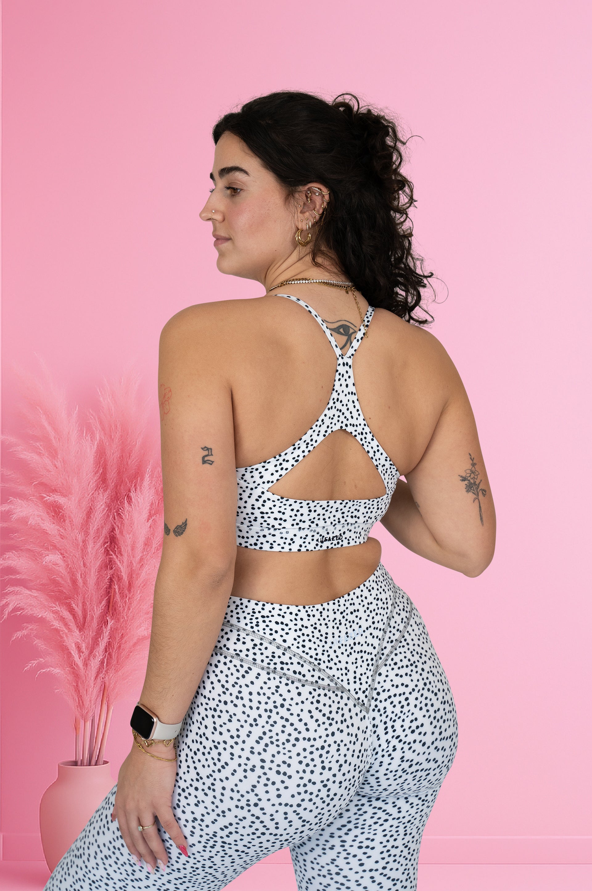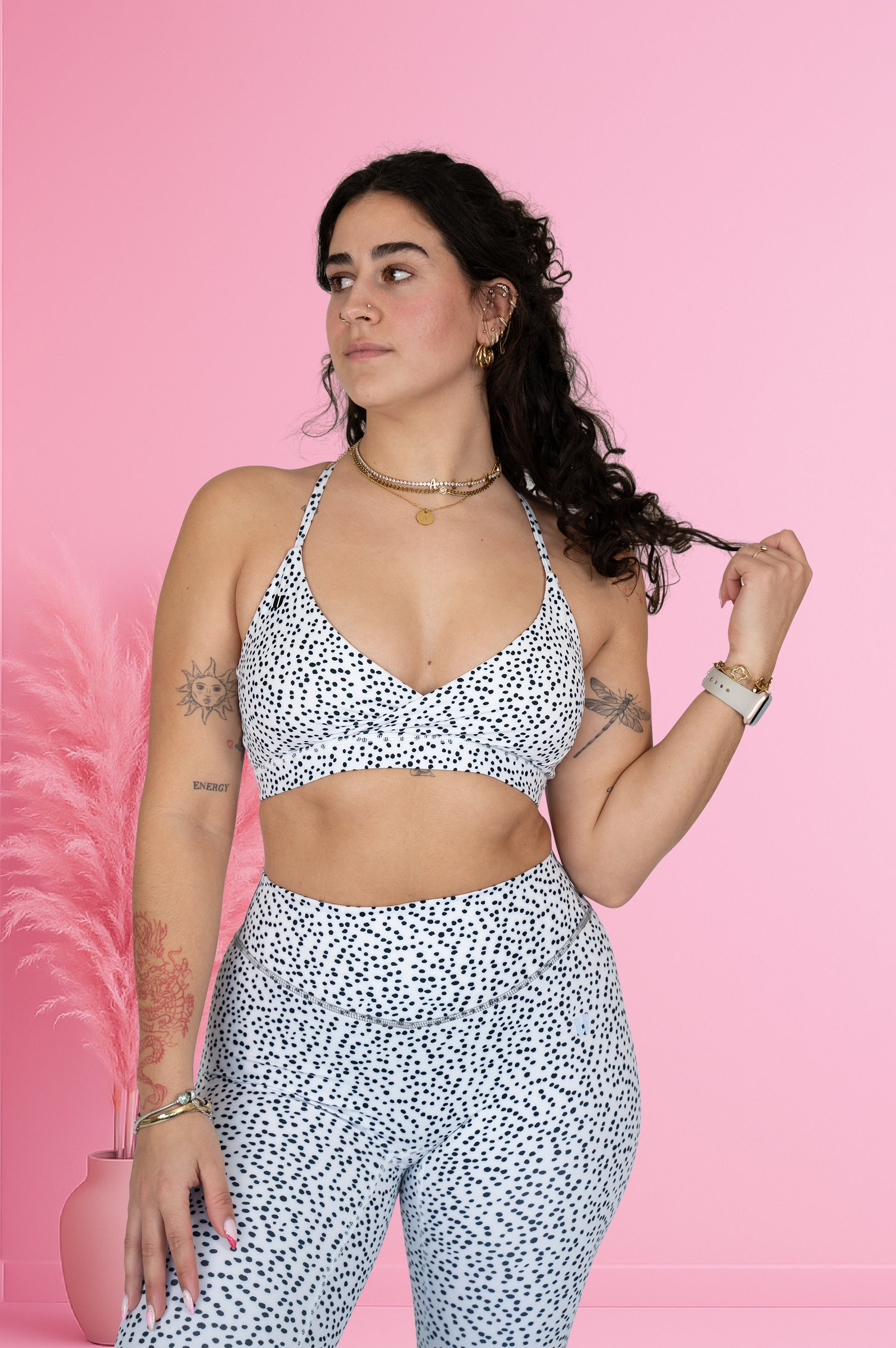 Préparez-vous à affronter vos séances d'entraînement avec style grâce à notre nouveau soutien-gorge de sport à col en V à motif brossé! Grâce à sa matière confortable et souple, vous vous sentirez à l'aise et soutenue tout en mettant en valeur votre silhouette. Conçu pour flatter les poitrines plus petites grâce à son col en V, ce soutien-gorge de sport est également doté d'un dos nageur pour un meilleur maintien. Découvrez à la fois la mode et la fonctionnalité avec notre soutien-gorge de sport à maintien moyen avec coussinets amovibles.