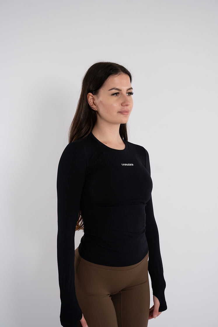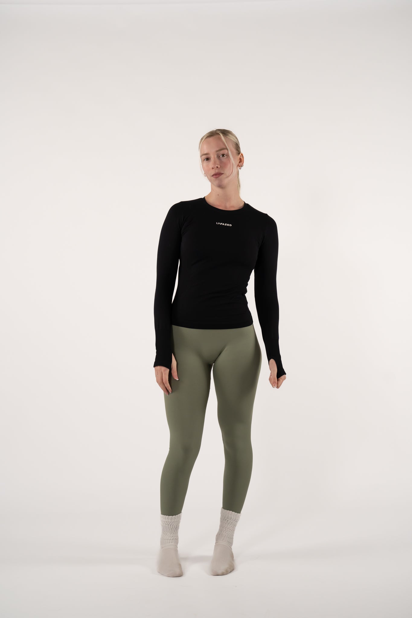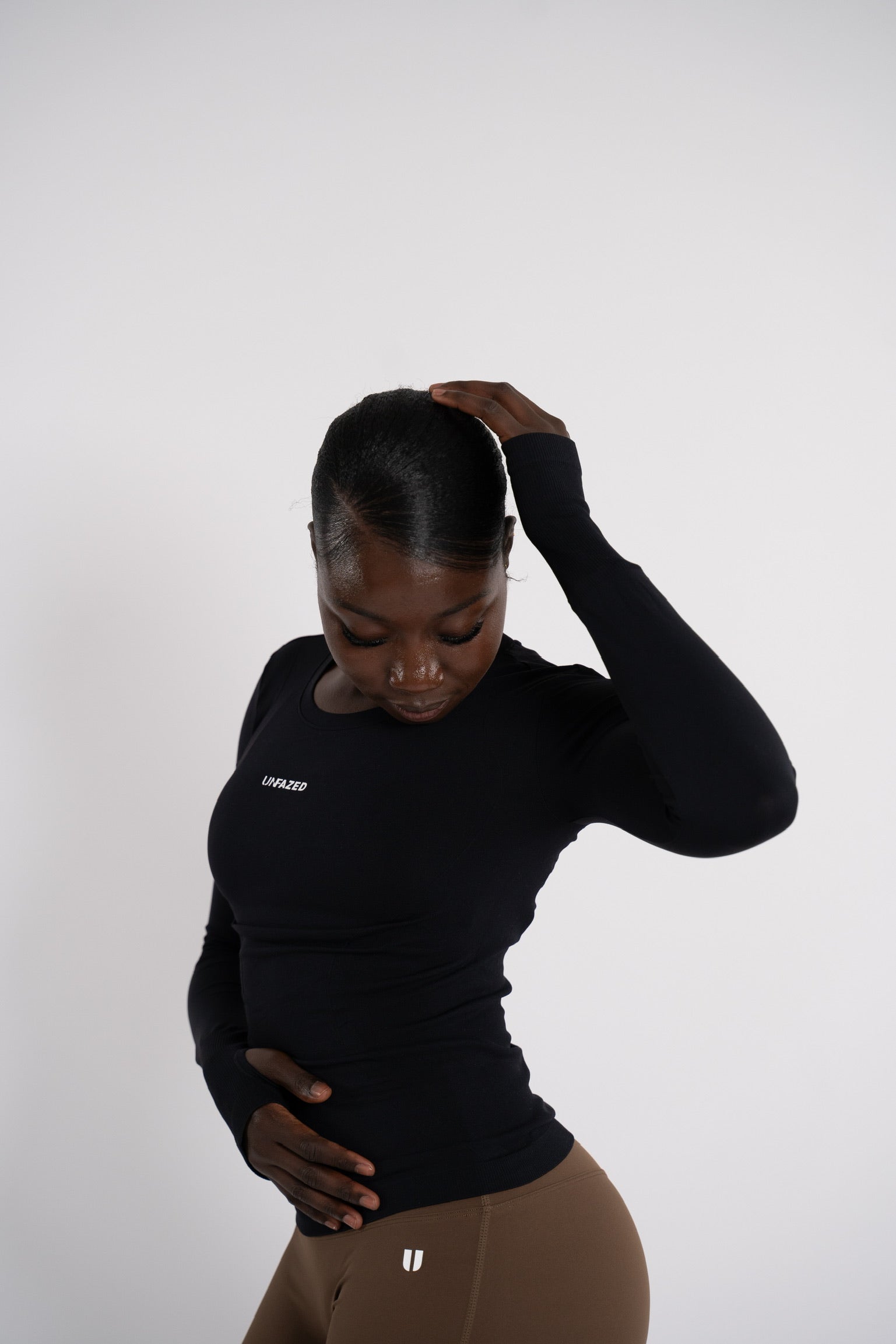 Offrez-vous le confort et la chaleur de ce haut ajusté à manches longues. Sa coupe ajustée n'est pas contraignante, grâce au tissu extensible. Les trous pour les pouces ajoutés le rendent encore plus polyvalent pour votre style de vie actif. De plus, il est super flatteur et résistant à la transpiration. Pour de meilleurs résultats, lavez à froid, à l’envers, et suspendez pour sécher. Élevez votre garde-robe avec ce haut incontournable!