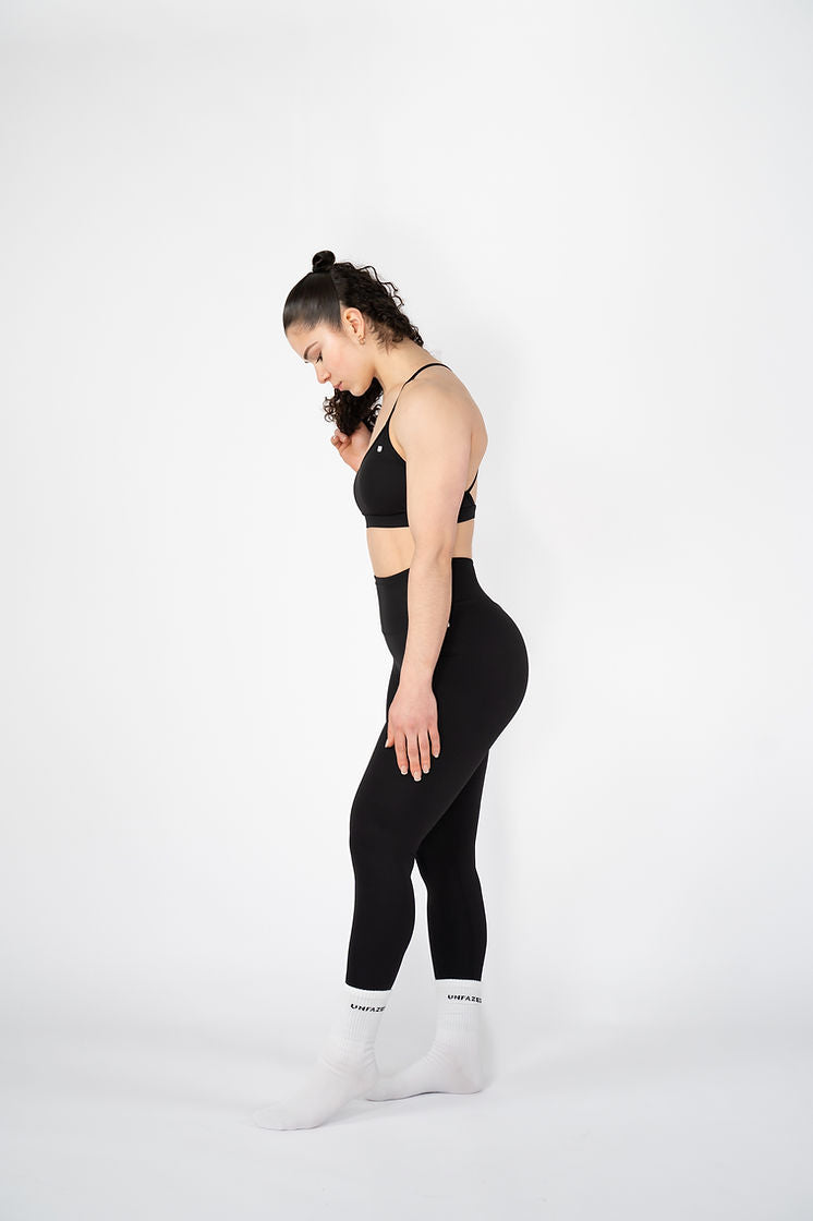 Faites l'expérience de la confiance, de la force et de la beauté avec Sky Leggings. Ces leggings super confortables sont conçus pour que vous vous sentiez mieux. Avec un scrunch interne et un toucher doux, ce legging donnera à vos fesses un subtil lift. Découvrez le confort et la flexibilité ultimes avec notre tissu incroyablement extensible. La taille cintrée l'empêche de glisser vers le bas et la forme en V au-dessus des fessiers ajoute une touche encore plus flatteuse. Parfait pour l'haltérophilie, le yoga, le pilates, mais aussi d'autres sports dynamiques et de haute intensité. Pour un meilleur entretien, laver à l’envers à froid et suspendre pour sécher.