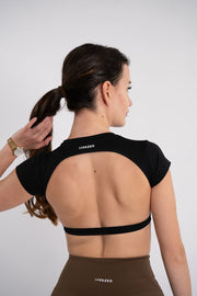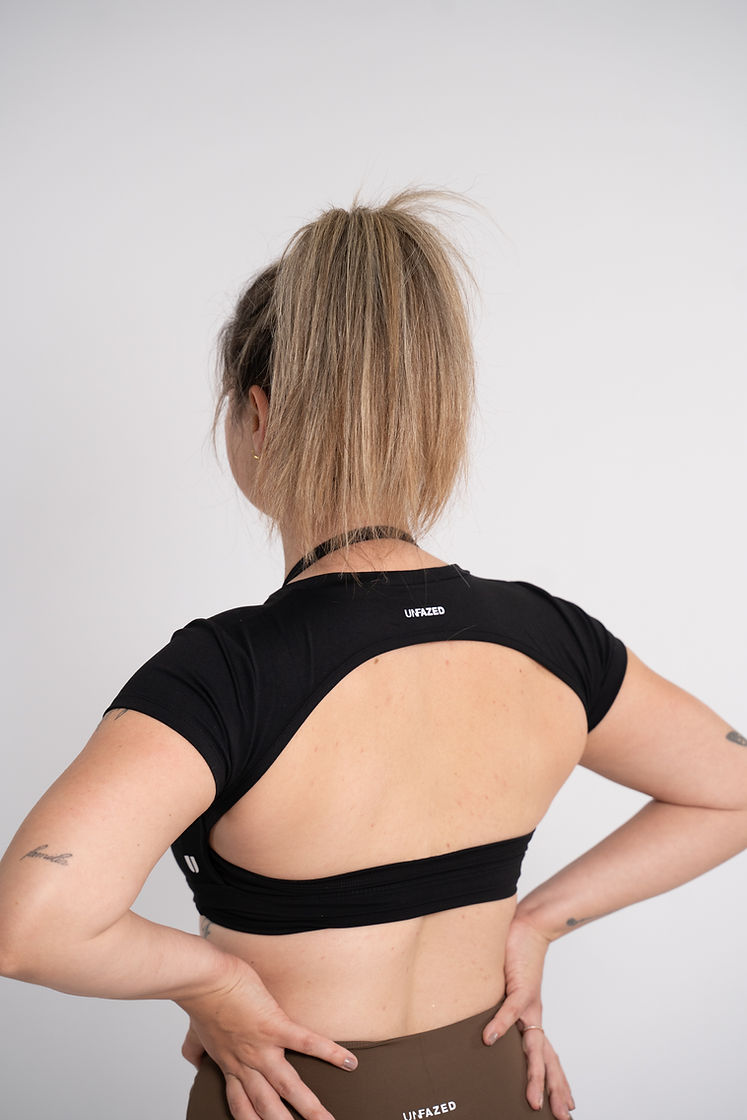 Dit shirt met open rug is een must-have voor gymgirls die hun toned rug willen laten zien! Gemaakt van dunne, rekbare stof, kan met of zonder beha worden gedragen. Of je het nu draagt ​​met extra pads of je favoriete sportbeha eronder, het is niet doorschijnend. Let op, er zit geen ingebouwde beha in. Het shirt is op de meeste plekken zweetbestendig. Vergeet niet om het binnenstebuiten te wassen op een koude stand en hang het te drogen. Maak je klaar om je zelfverzekerd te voelen in dit stijlvolle open rug crop T-shirt.