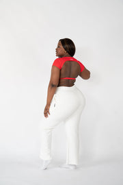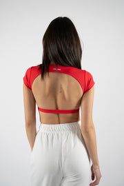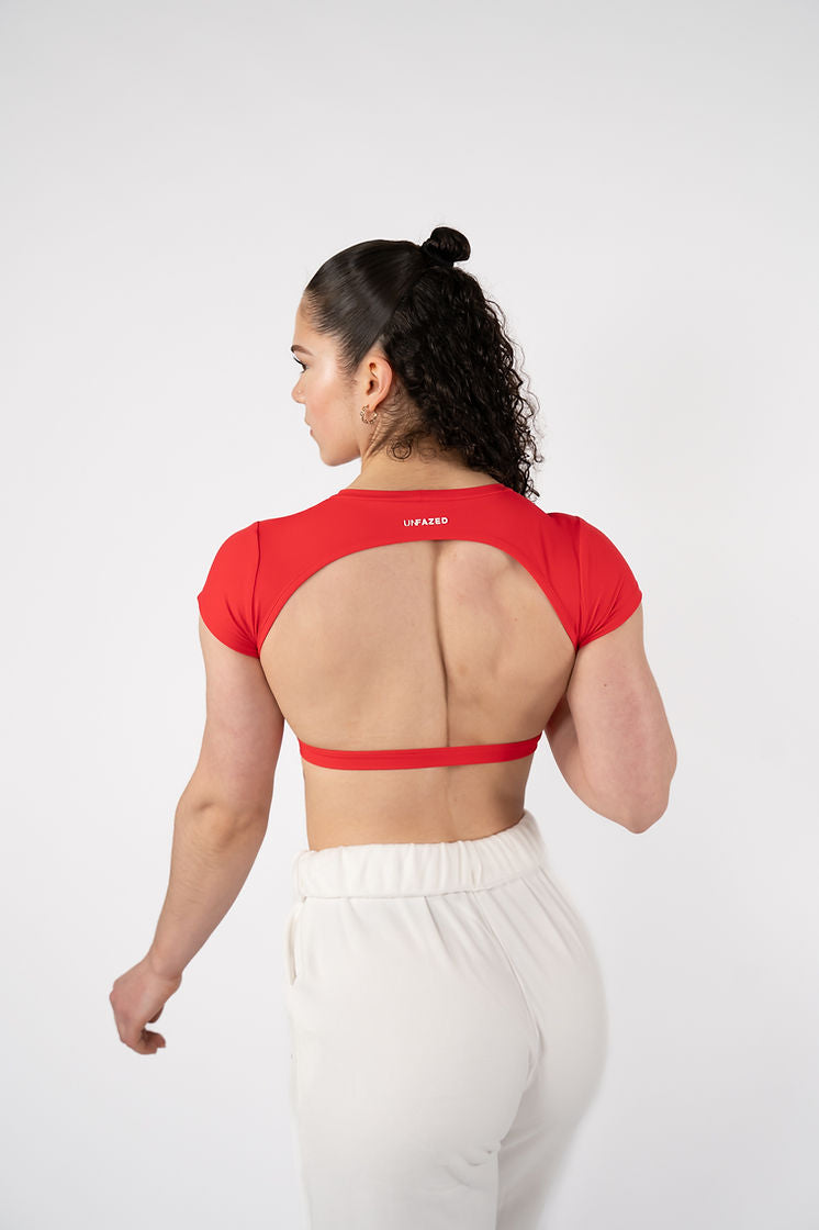 Dit shirt met open rug is een must-have voor gymgirls die hun toned rug willen laten zien! Gemaakt van dunne, rekbare stof, kan met of zonder beha worden gedragen. Of je het nu draagt met extra pads of je favoriete sportbeha eronder, het is niet doorschijnend. Let op, er zit geen ingebouwde beha in. Het shirt is op de meeste plekken zweetbestendig. Vergeet niet om het binnenstebuiten te wassen op een koude stand en hang het te drogen. Maak je klaar om je zelfverzekerd te voelen in dit stijlvolle open rug crop T-shirt.