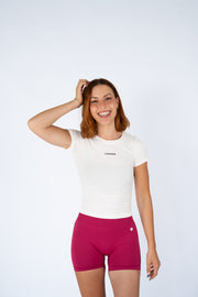 Ervaar het ultieme comfort in deze nauwsluitende top met korte mouwen. De strakke fit is niet beperkend dankzij de rekbare stof én het is superflatterend. Upgrade je garderobe met dit must-have T-shirt!