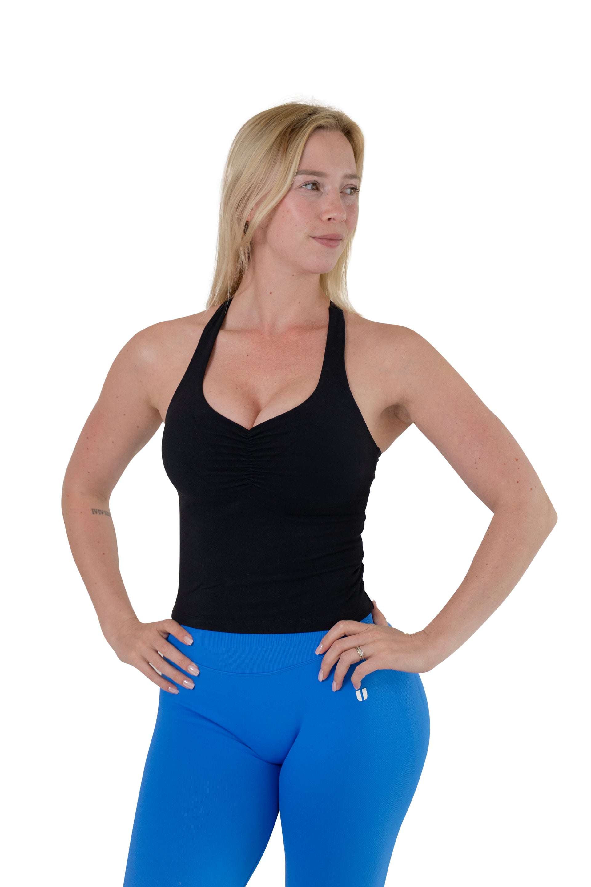Upgrade your activewear with the Ruched Front Longline Sports Bra: the perfect balance between style and performance. Designed with a flattering ruched detail at the front and a sleek strappy triangle back, this bra is as eye-catching as it is supportive. The longline cut gives extra coverage and comfort, making it ideal to wear solo or layered. With medium support and removable padding, it’s your go-to for both training and everyday wear.